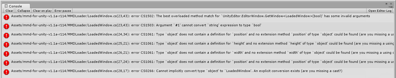 謎のエラーがLoadedWindow.csから大量にでてる