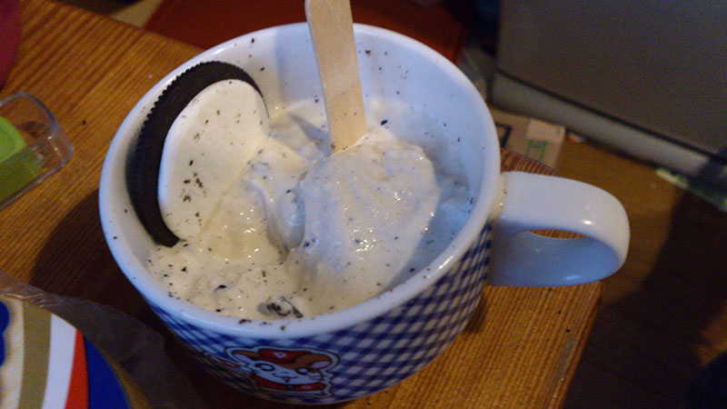 スーパーカップの甘味とオレオのほのかな苦味がすごくマッチしていて、